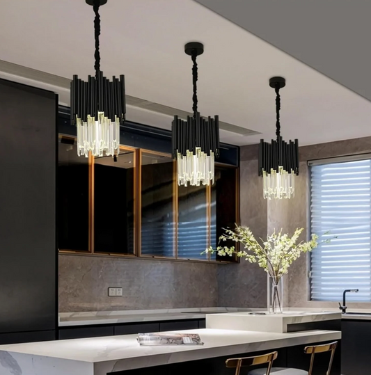 Modern Black Tube Crystal Pendant for Kitchen Island
