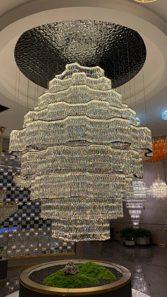 Extra Large Luxury Multi-layered Waving Chandelier in Chrome Finish Color