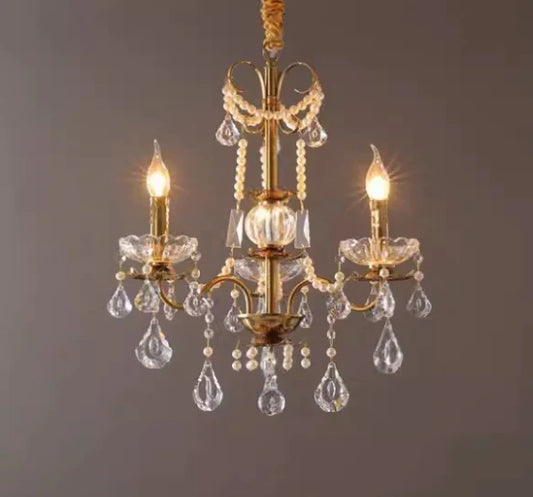 Vintage Romantic Pearl Brass Princess Style Candle Chandelier for Bedroom/ Restaurant/L