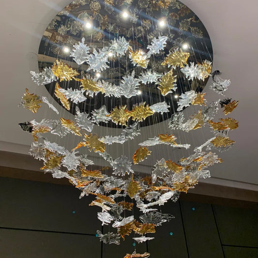 Modern Floating Maple Leaf Glass Chandelier for Living Room/Bedroom/Bathroom