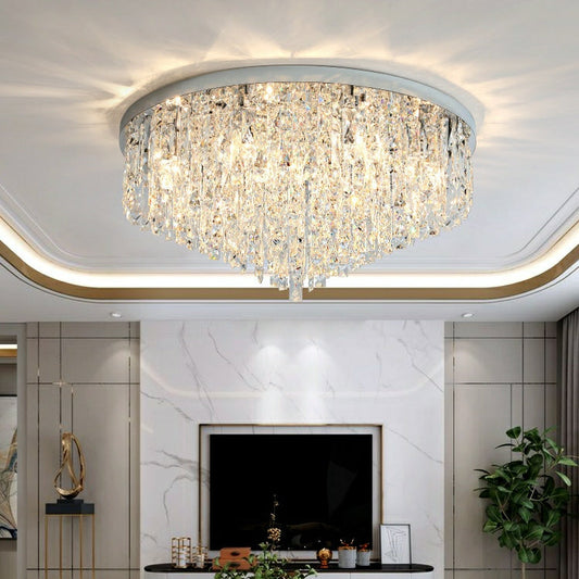 Modern Living Room Round Crystal Chandelier Gold/ Silver Finish Ceiling Light Fixture For Bedroom