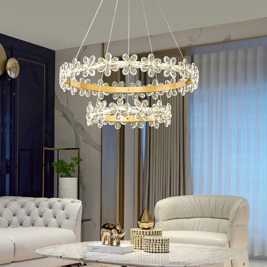 New Style Flower Crystal Chandelier For Living Room Cheap Petal Ring Pendant Lighting Fixture for Girls Bedroom