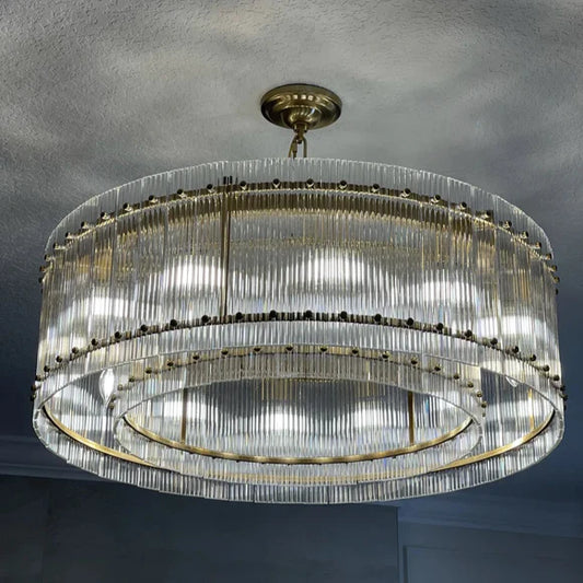 Modern 1-Tier Round Handmade Fluted Glass Panels Chandelier