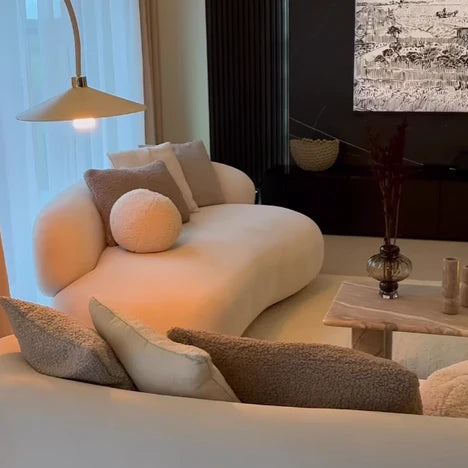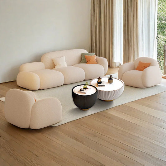 Cotton Linen Fabric Removable Washable Cream White Sofa Living Room Wabi-Sabi Style