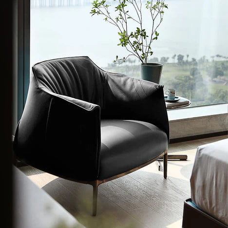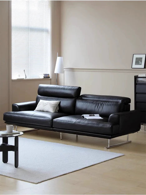 Vintage Simple 3/4/5 Seater Black Leather Straight Sofa