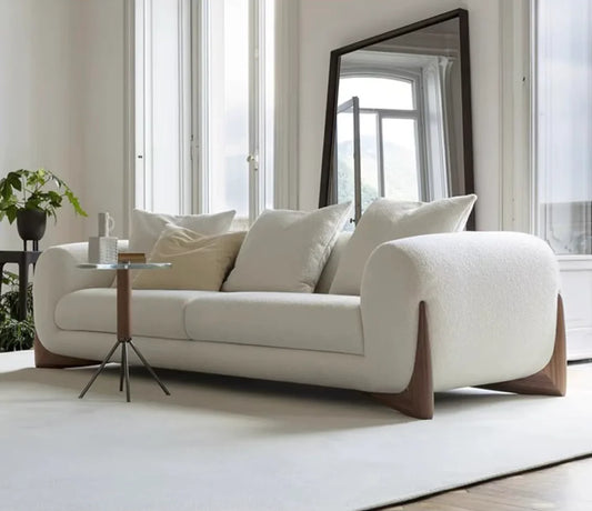 Cotton Linen Fabric Removable Washable Cream White Sofa Living Room Wabi-Sabi Style