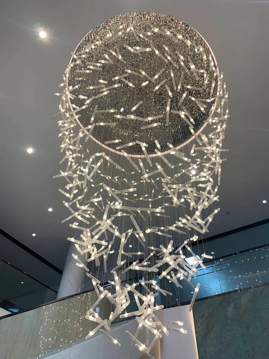 Luxury Spiral Bubble Crystal Stick Chandelier for Staircase/Foyer/High-ceiling