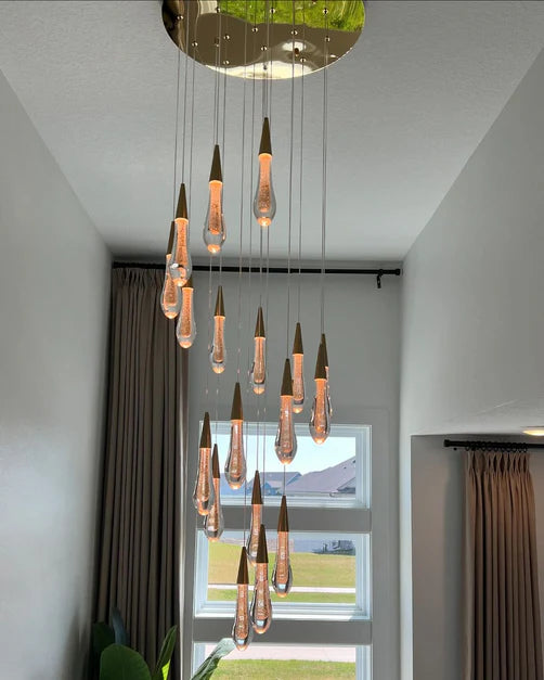 Modern Cascade Raindrop Round Spiral Crystal Chandelier for Staircase/Foyer