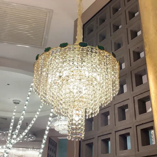 Luxury Multi-tier Jade Crystal Chandelier for Living Room/Staircase/Foyer