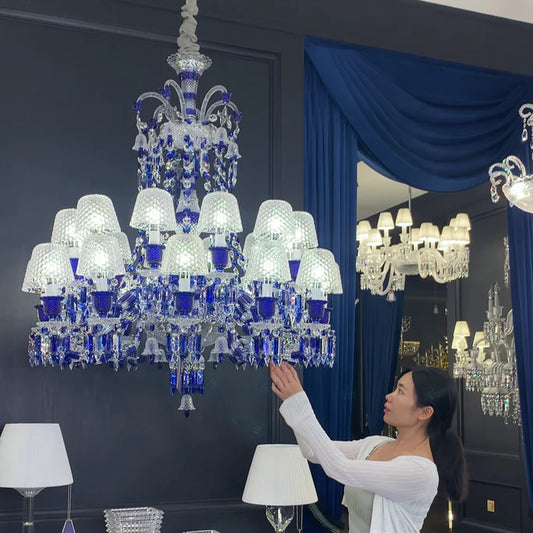 Luxury Vintage Blue Crystal Lampshade Chandelier for Living Room/Staircase/Foyer