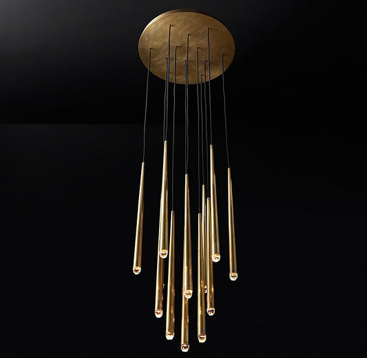 Minimalist Staircase Ceiling Lighting Fixture Foyer Pendant Chandelier In Gold Brass Finish