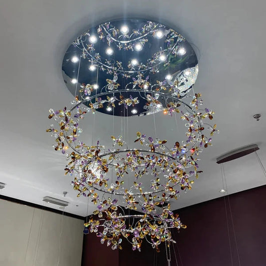 Modern Luxury 1/2/3-Tier Floral Crystal Ring Chandelier for Living Room/Staircase/Foyer