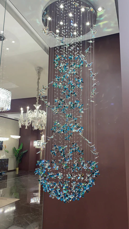 Modern Floating Blue Butterfly Crystal Chandelier for Living Room/Staircase/Foyer