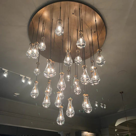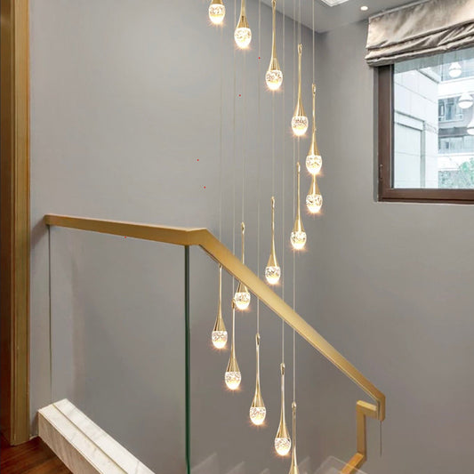 Modern Crystal Waterdrops Chandelier Foyer Staircase Ceiling Lamp Entryway Lighting