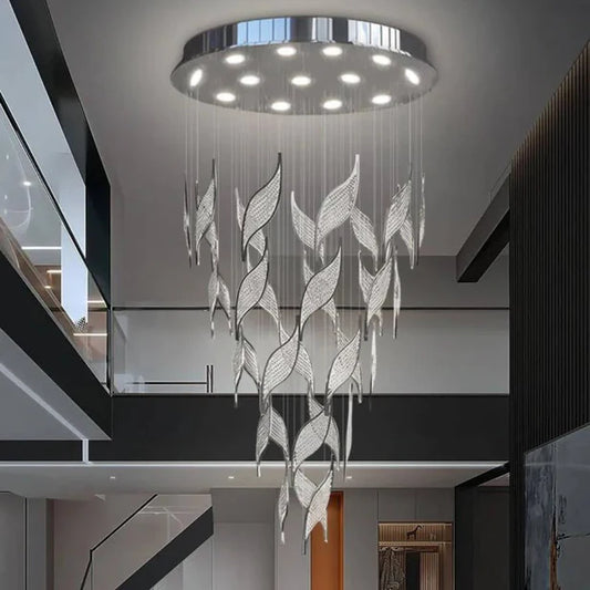 Modern Light Luxury Multi-layered Openwork Leaf Crystal Chandelier for Living Room/ Staircase/Duplex