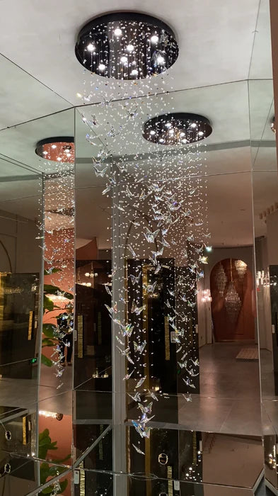 Northern European Style K9 Crystal Floating Butterfly Chandelier for High-ceiling
