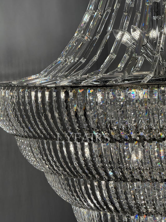 Lustre rond en cristal à plusieurs niveaux avec finition noire et dorée pour salon
