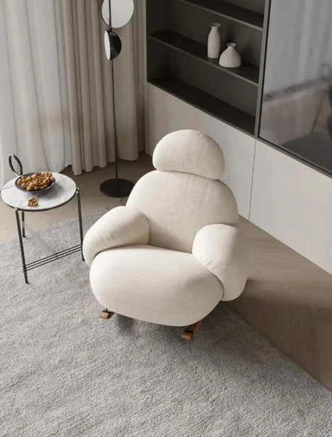 Fauteuil à bascule nordique en sherpa blanc/gris/rose