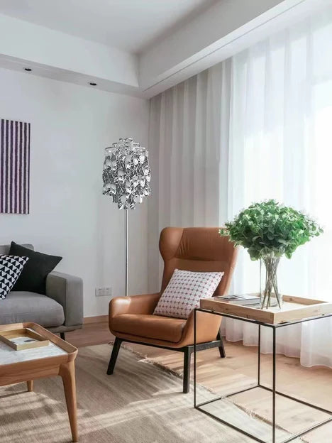 Lampadaire post-moderne en spirale avec cascade et finition chromée pour salon/table de chevet