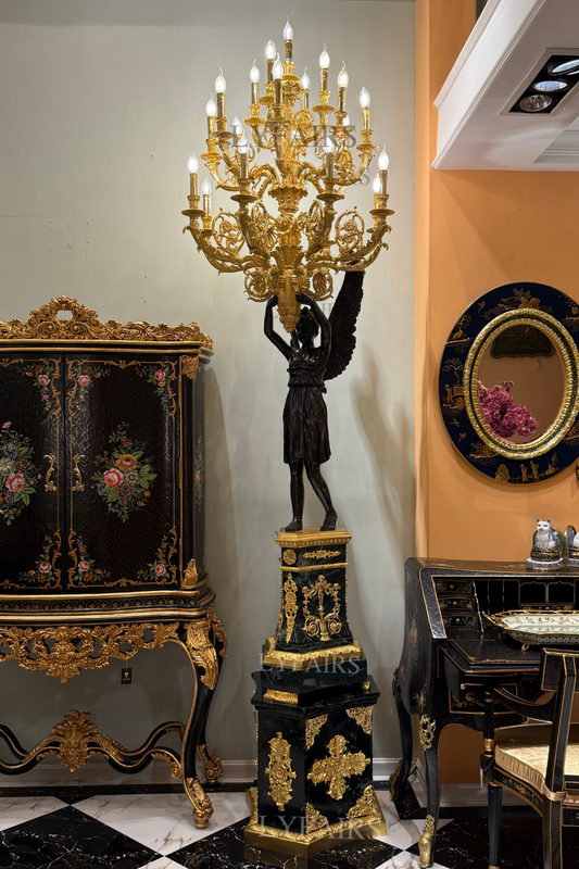 Lampadaire en laiton antique à motifs uniques de style néo-baroque