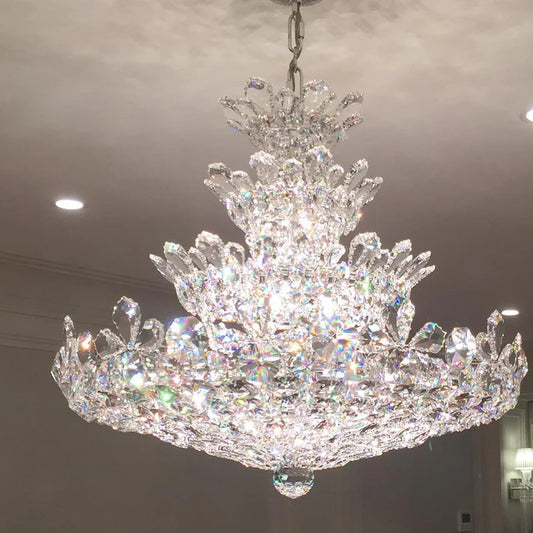 Lustre en cristal de luxe à feuilles Empire pour escalier/hall/salon