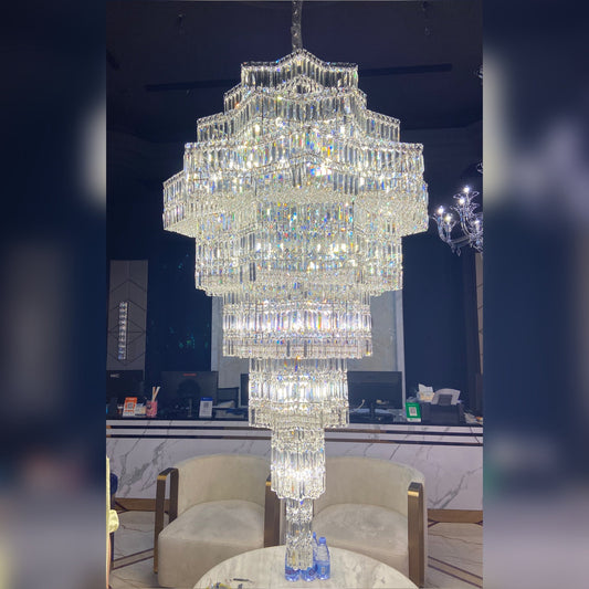 Lustre en cristal extra large de luxe à plusieurs niveaux pour escalier/hall/salon