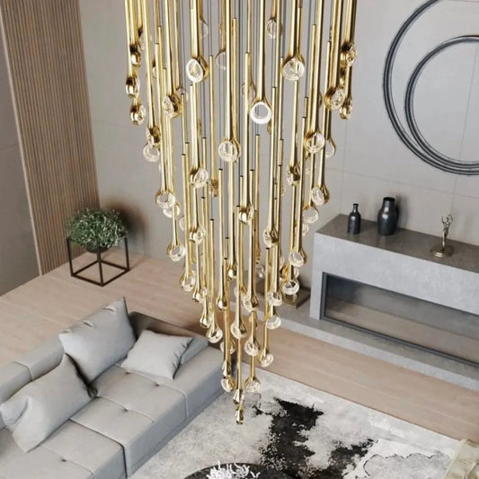Lustre suspendu moderne en or pour salon, escalier ou hall d'entrée