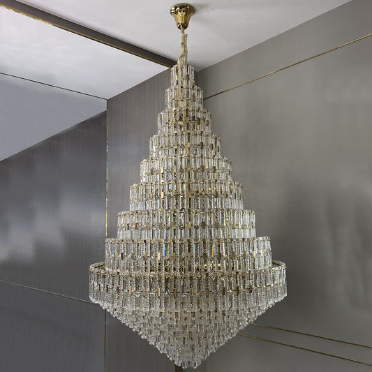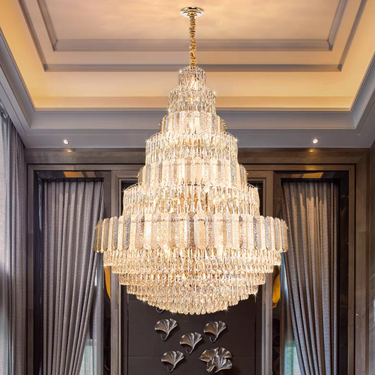 Lustre Empire en cristal multicouche moderne surdimensionné pour salon/hall/escalier/hall d'hôtel