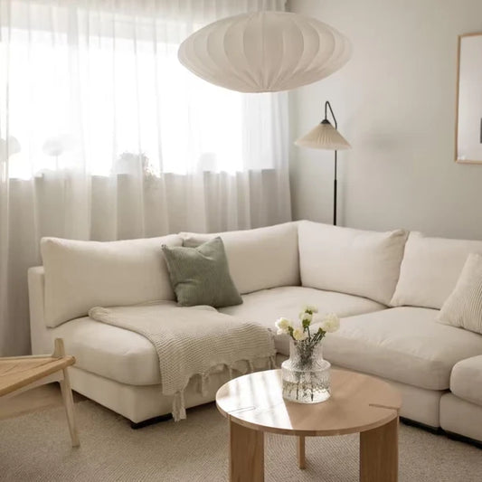 Canapé sectionnel en tissu simple Wabi-sabi Marshmallow avec accoudoirs gauche/droit