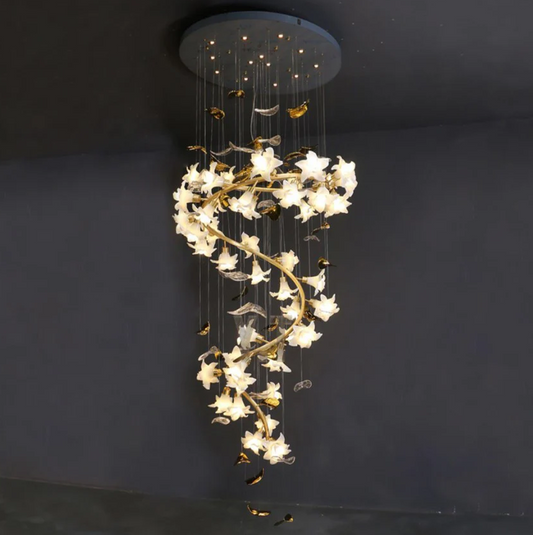 Art Design Brass Branch Ceramic Flower Chandelier