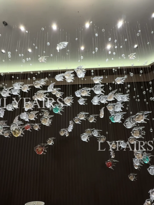 Artistic Flowing Fish Glazed Glass Chandelier for Hotel Lobby