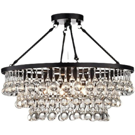 Plafonnier semi-encastré en fer noir à 8 lumières, forme ronde, en cristal, pour salon