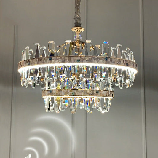 Lustre en cristal de glace à 2 roues pour salon, salle à manger