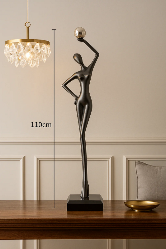 Sleek Abstract Female Statue with a Silver Orb in Hand