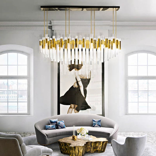Lustre en cristal goutte de pluie post-moderne, luminaire rectangulaire/rond pour salon/table à manger