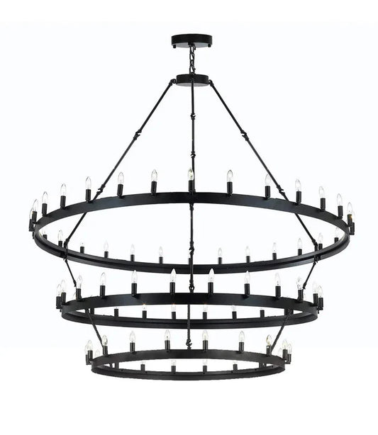 Lustre industriel minimaliste à anneaux métalliques à 1, 2 ou 3 niveaux pour plafonds hauts