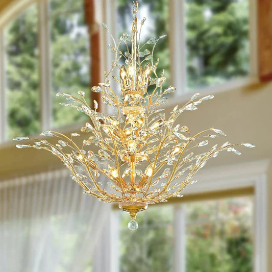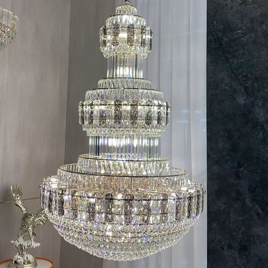 Lustre en cristal de luxe Golden Era, style fontaine, pour escalier, hall d'entrée ou salon