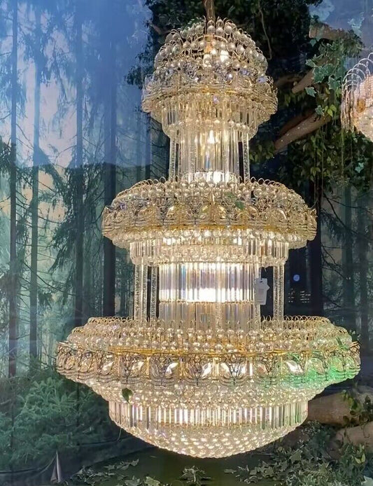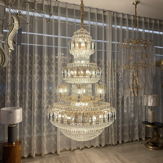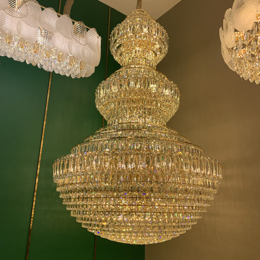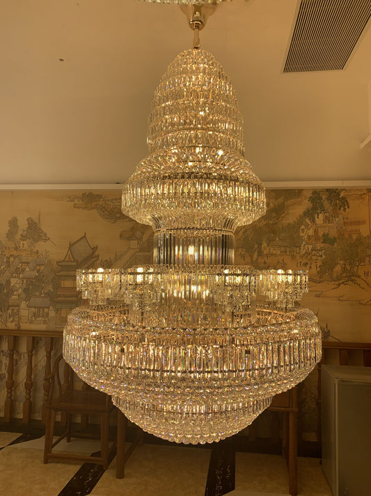 Lustre en cristal transparent Golden Era Grand Fountain de luxe et d'opulence pour haut plafond