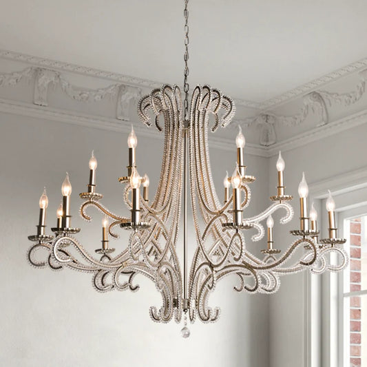 Lustre traditionnel en cristal blanc transparent pour escalier, hall d'entrée, salon ou villa