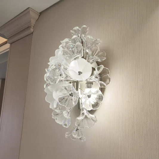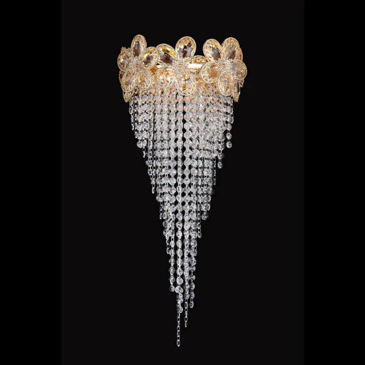 Applique murale moderne à pampilles en cristal et fleur dorée
