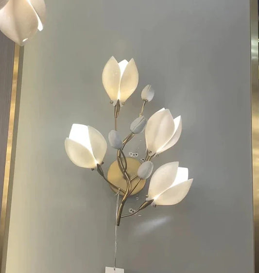 Applique murale de luxe post-moderne en laiton et céramique avec motif floral
