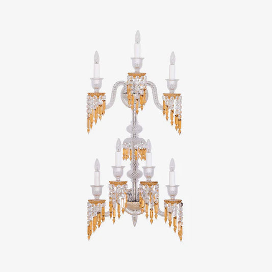 Applique murale de luxe à 7 bougies en cristal jaune et transparent
