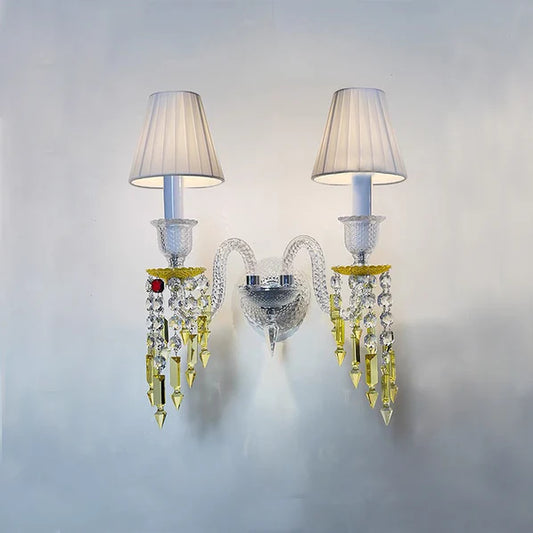 Applique murale de luxe à 2 bougies en cristal jaune et transparent