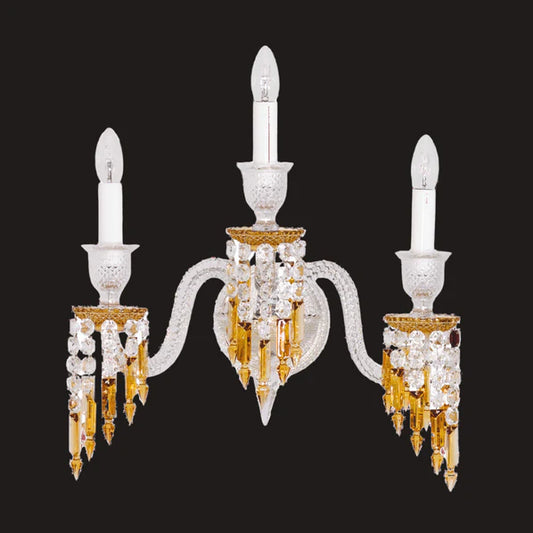 Applique murale de luxe à 3 bougies en cristal jaune et transparent
