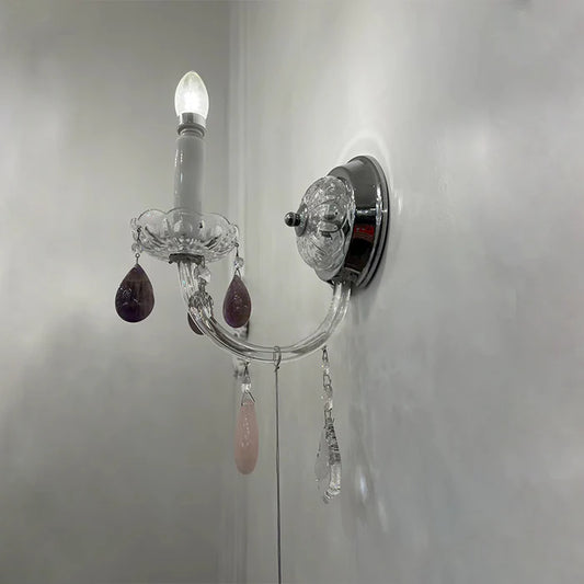 Applique murale de luxe à 1 lumière en cristal de roche améthyste/rose/transparent