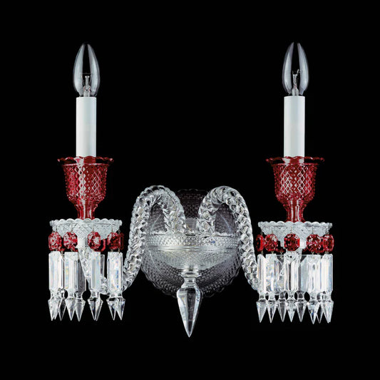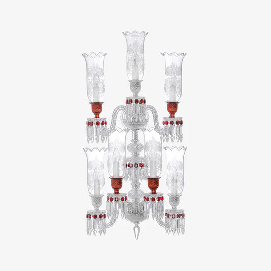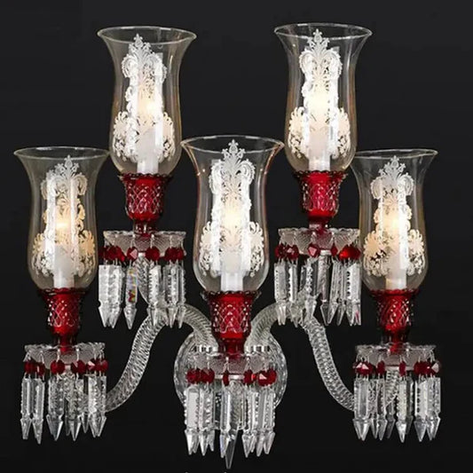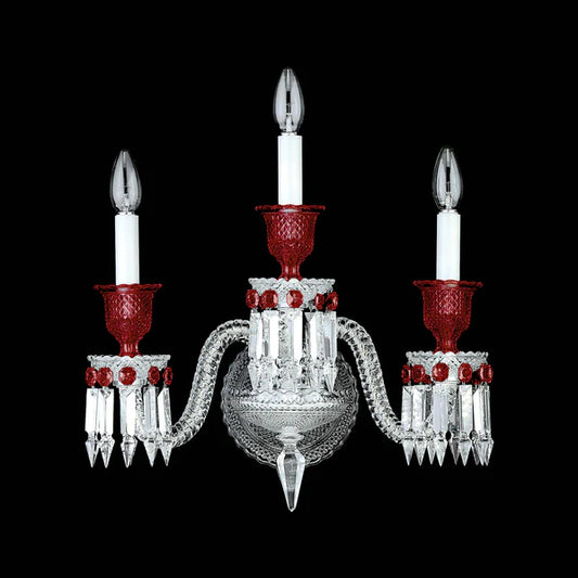Applique murale de luxe à 3 bras en cristal rouge avec bougie