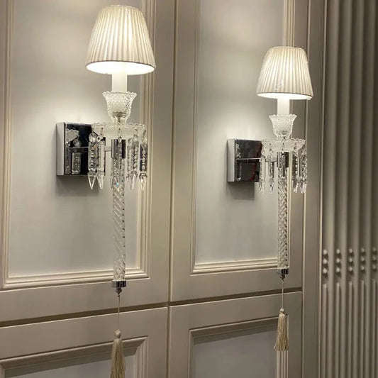 Applique murale moderne de luxe à 1 lumière en cristal avec abat-jour en tissu