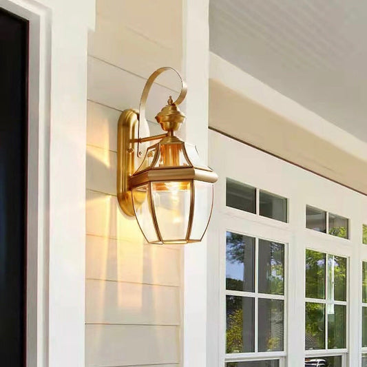 Appliques murales d'extérieur classiques, étanches, en cuivre pur, pour balcon, allée/couloir, lampes de chevet/d'escalier en verre