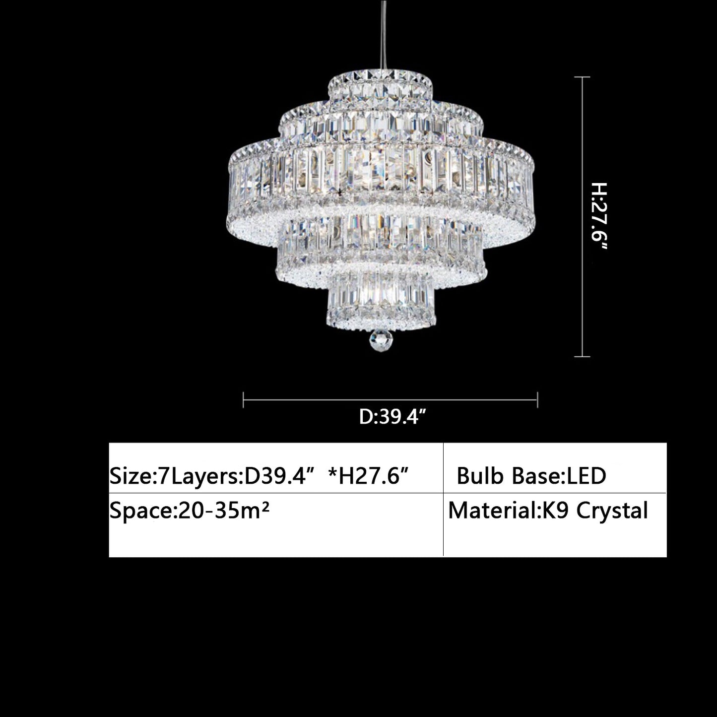 Lustre en cristal de luxe moderne multicouche extra large pour salon/salle à manger/villa