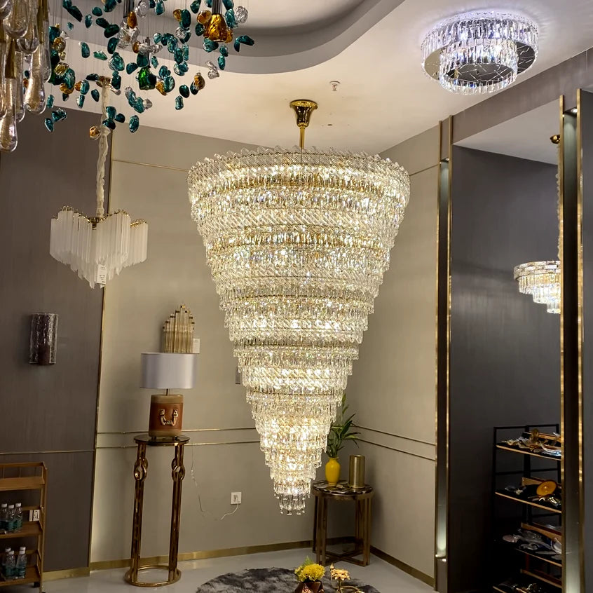Lustre en cristal de luxe extra large pour escalier/salon/hall/villa